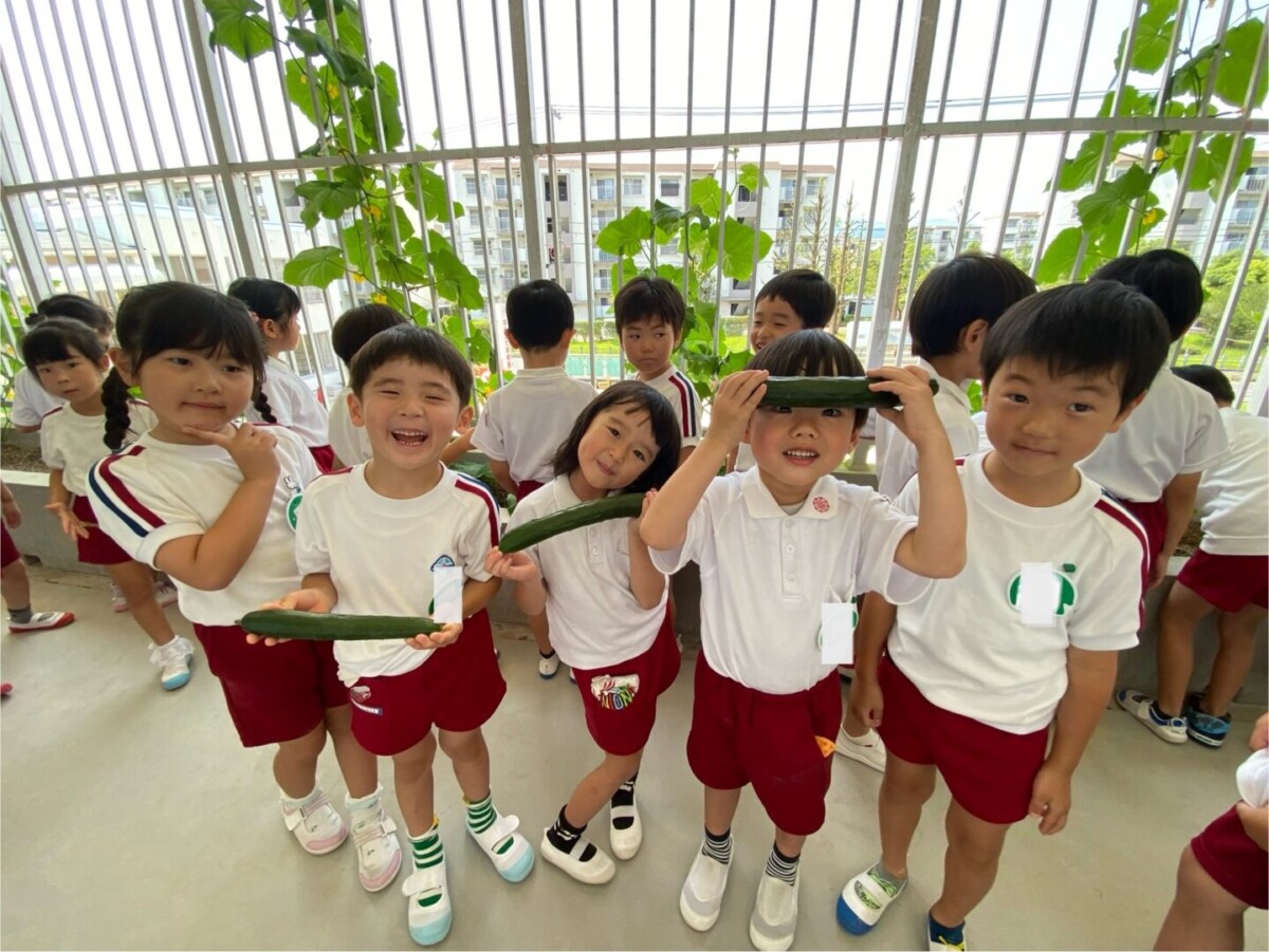 収穫して順番にきゅうりを持ってみて、自然の恵みを感じることができました♪