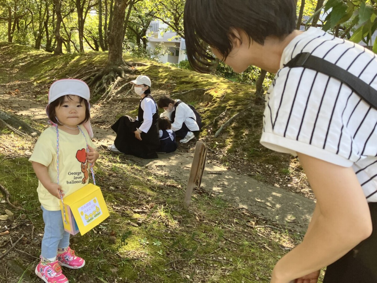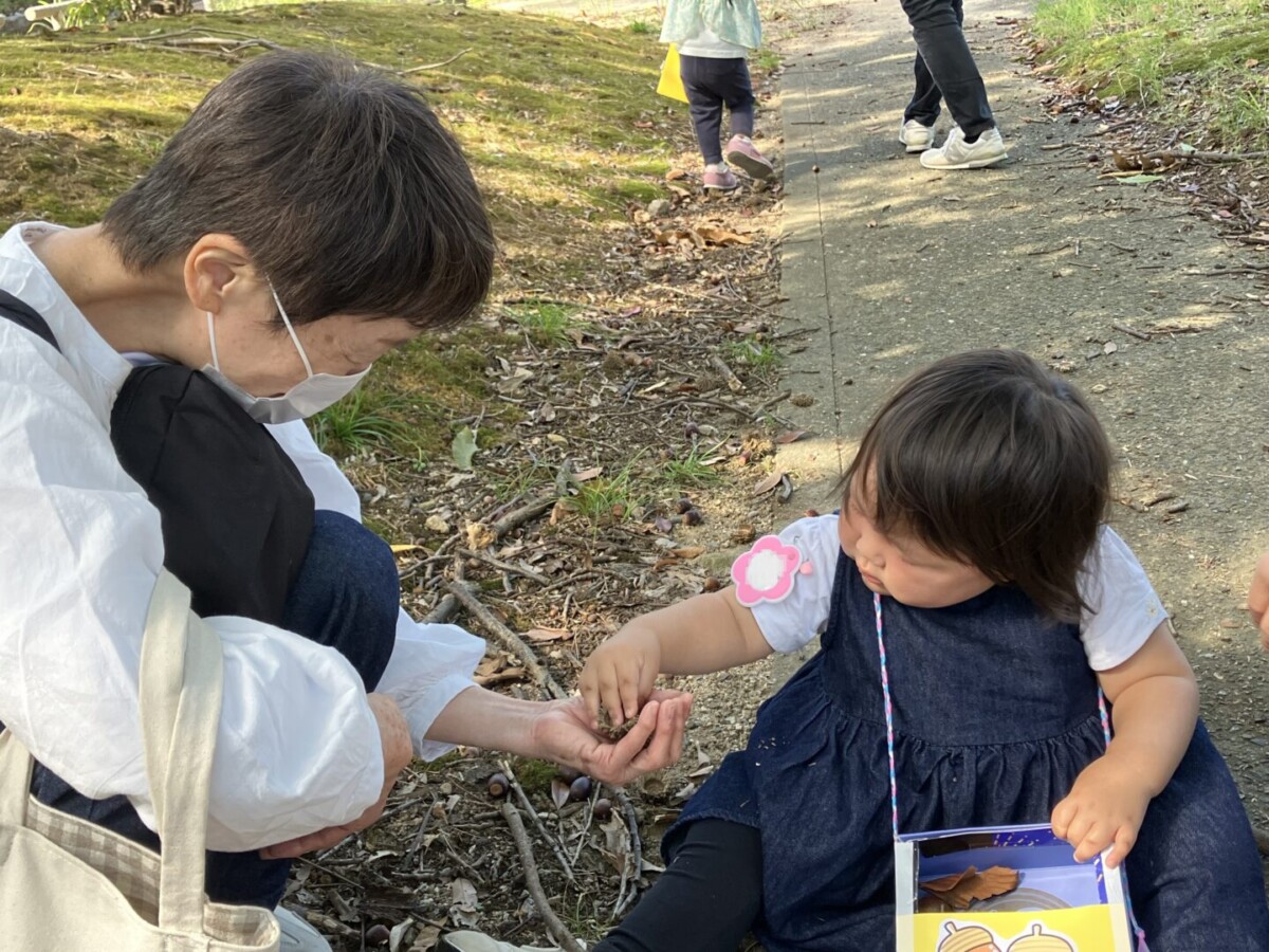 10月23日(木) 第4回目の未就園児教室を行ないましたー♪今回は秋のおさんぽで「どんぐり拾い」に行きました♪