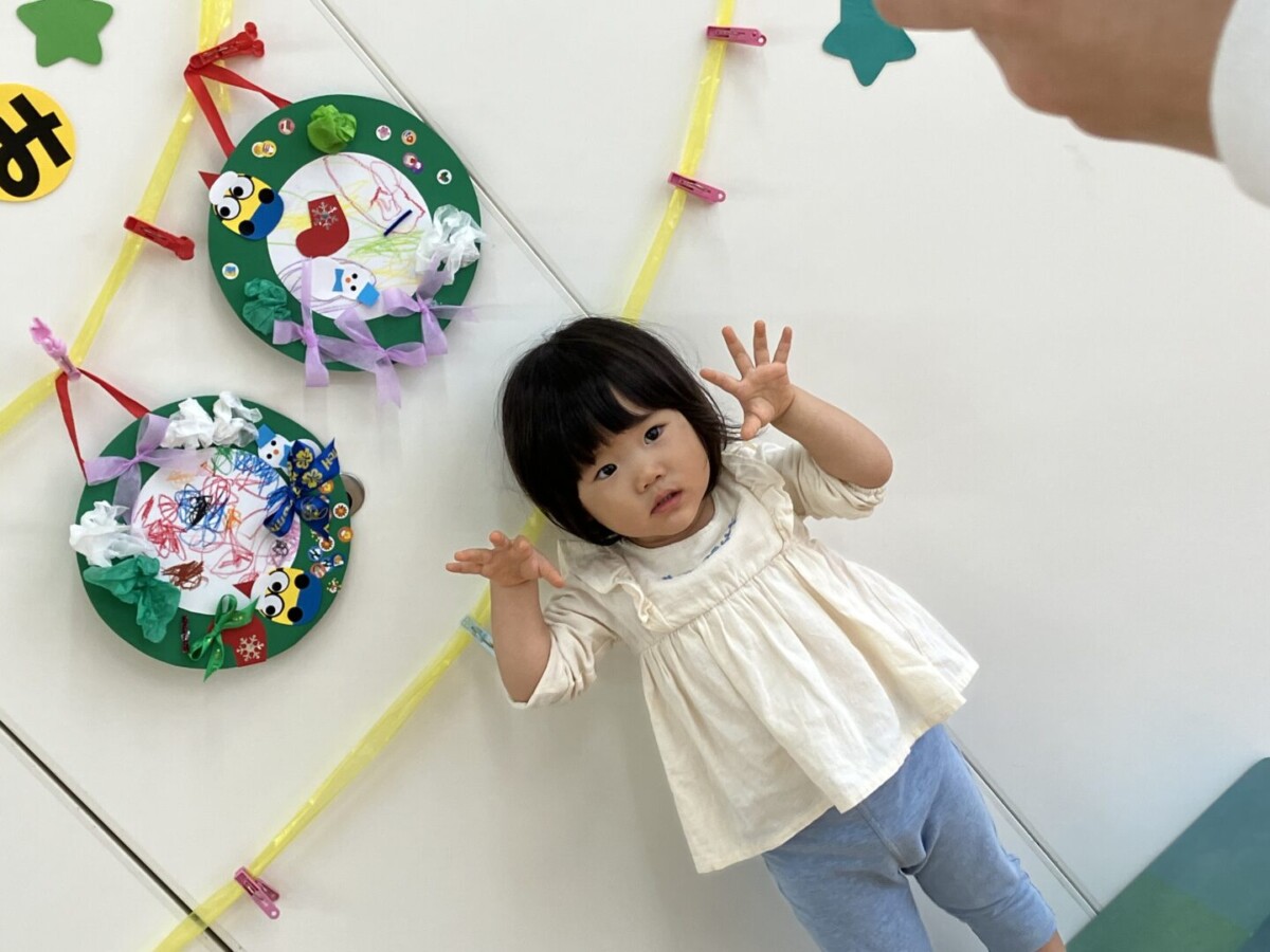 のりが乾くまでの間、体操をしたり、お話を聞いたり、リースと一緒に写真撮影をしたり♪