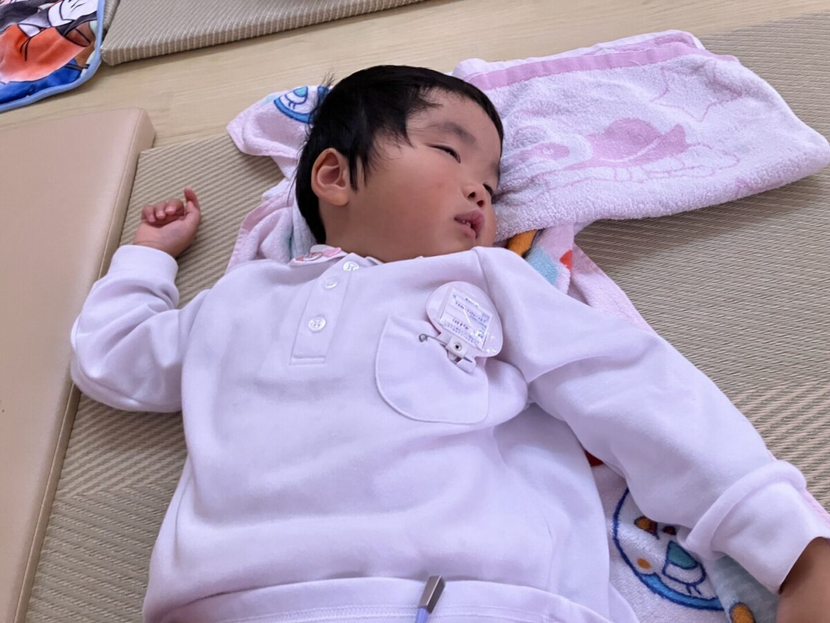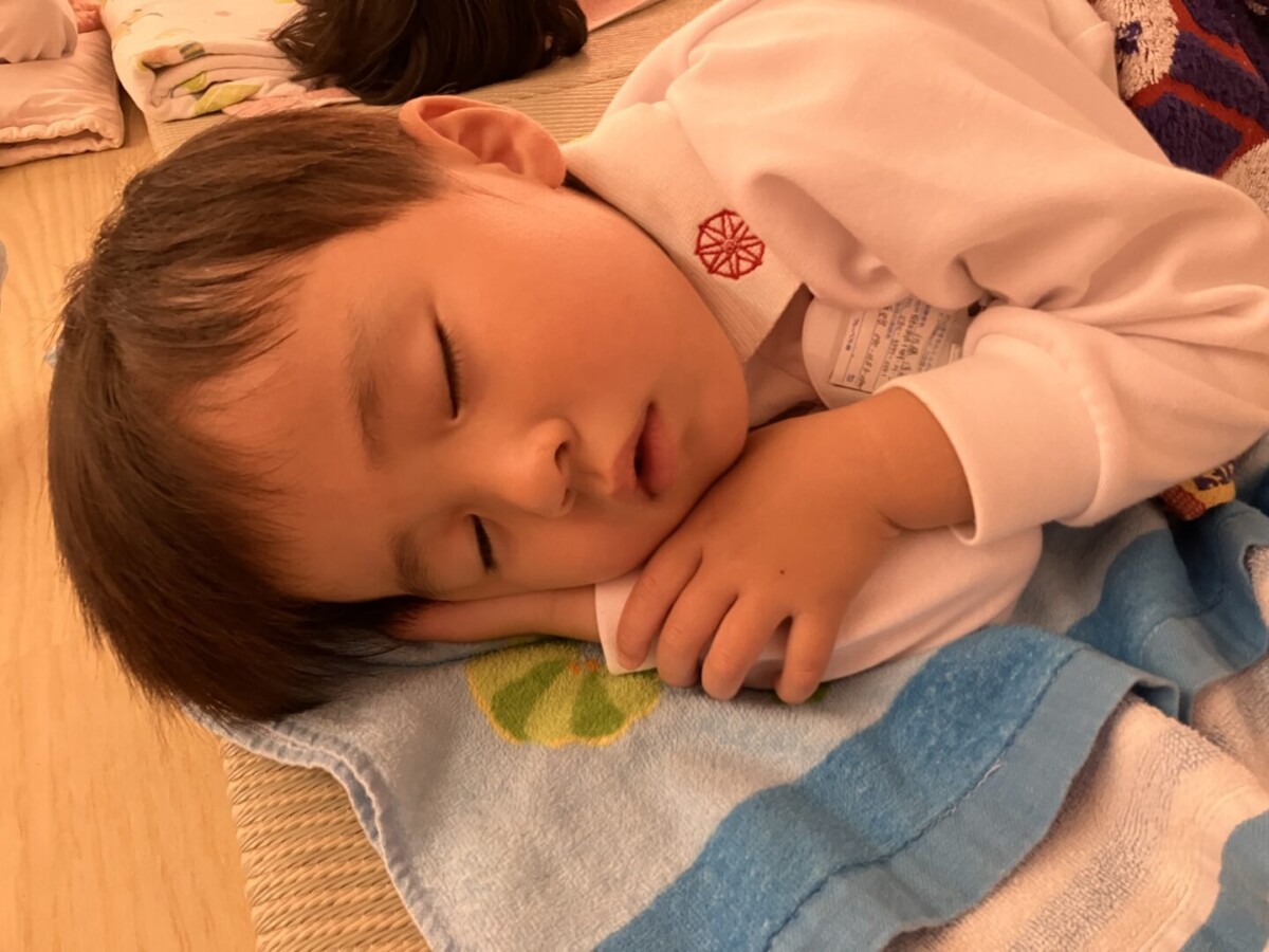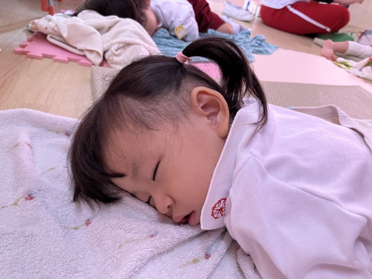 パネル畳を敷いて、お家から持ってきているお気に入りのタオルでお昼寝です。