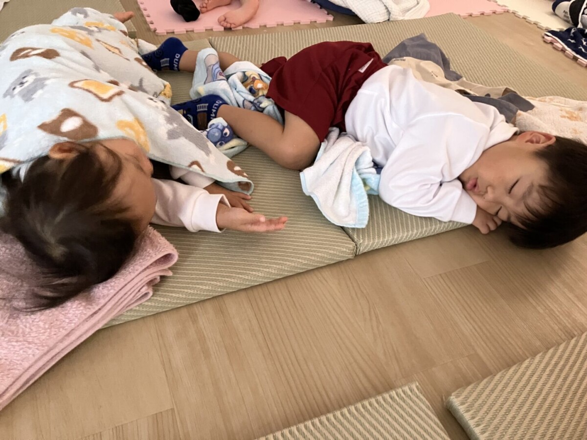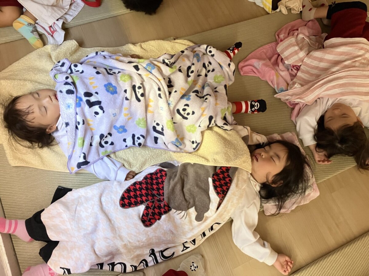 2歳児組さんは、お給食が終わったら1時間くらいですが、みんなでお昼寝をしています。