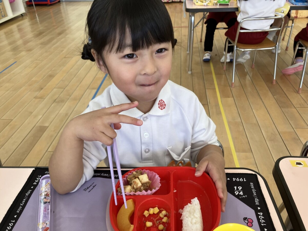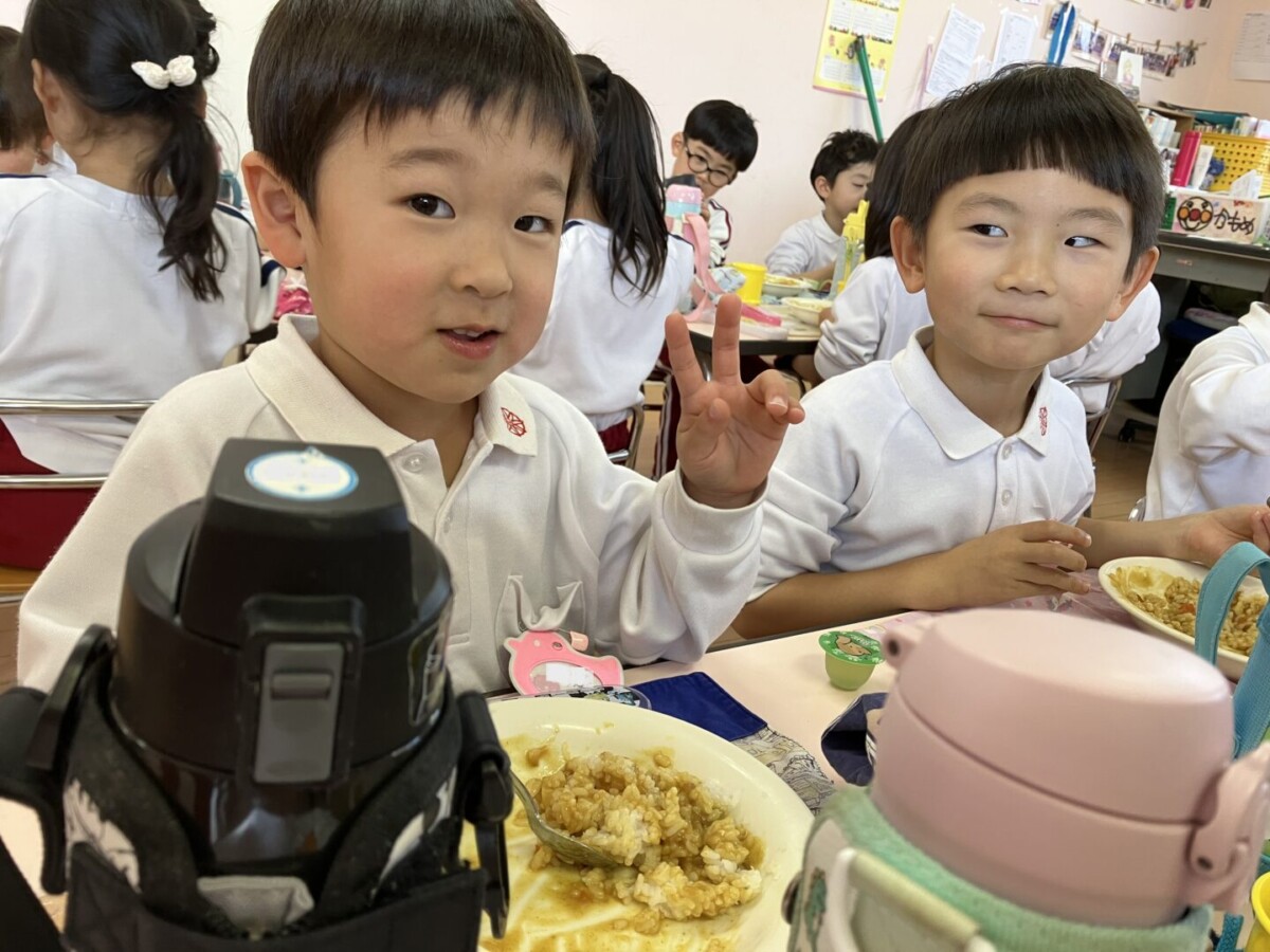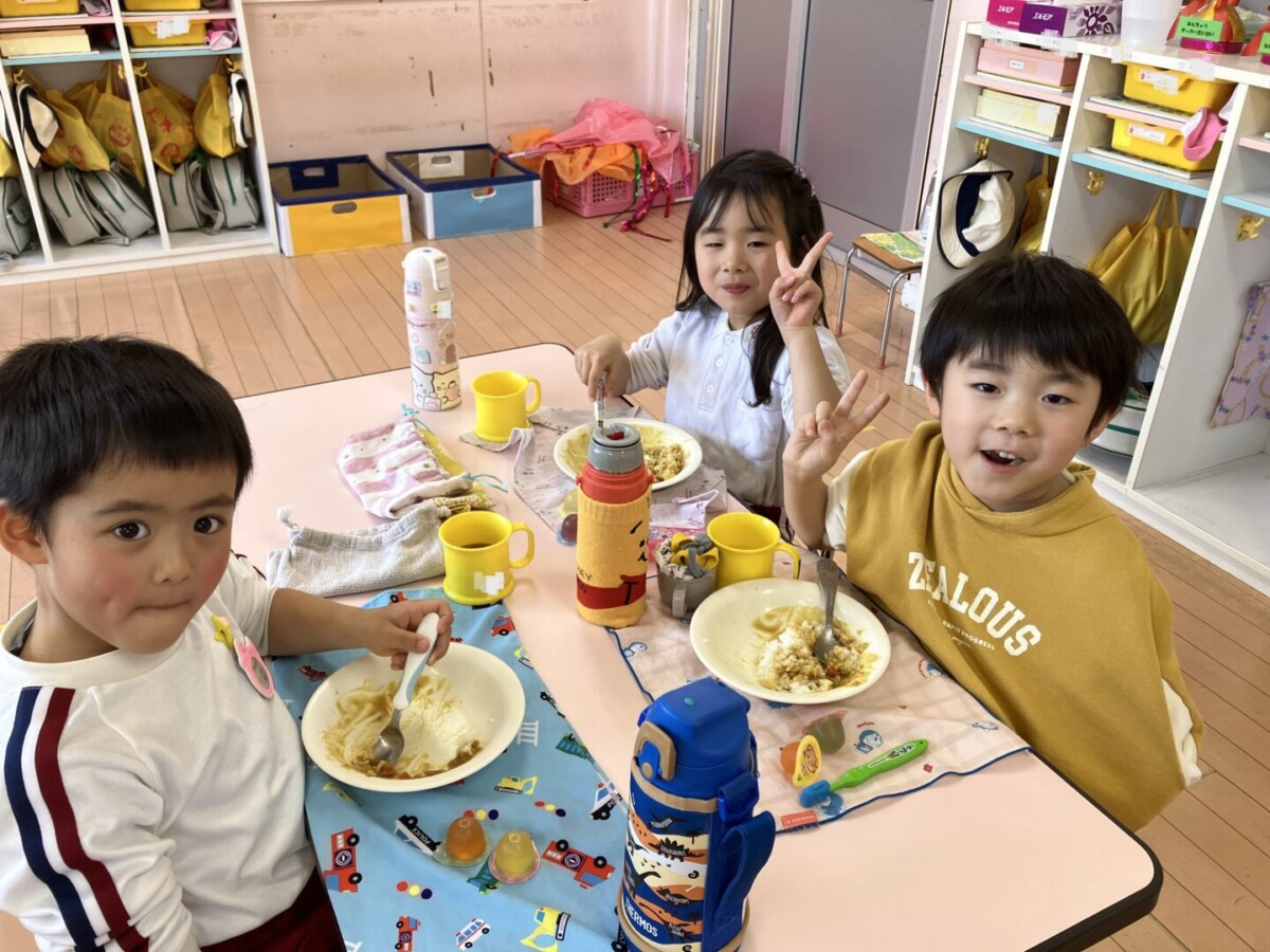 今日は、かもめ組さんとすみれ組さんのお給食の様子をお届けします♪