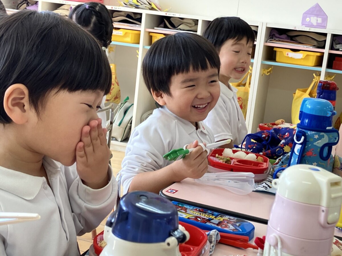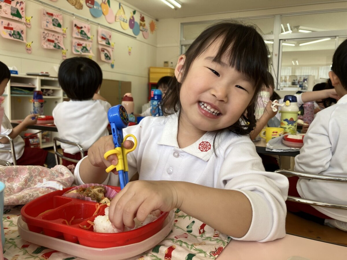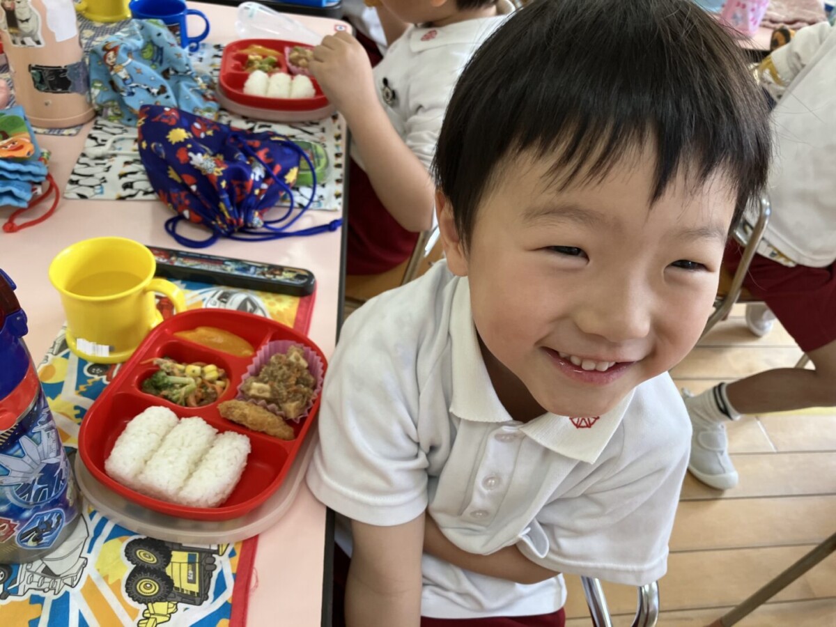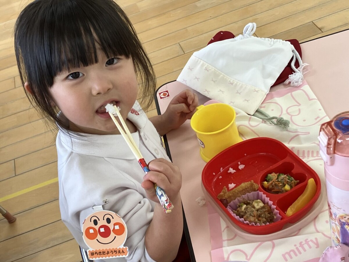 苦手なおかずが入っている日もありますが、一口でもチャレンジできるように促しています。全部食べることができたら、おたより帳に花丸が付きます☆
