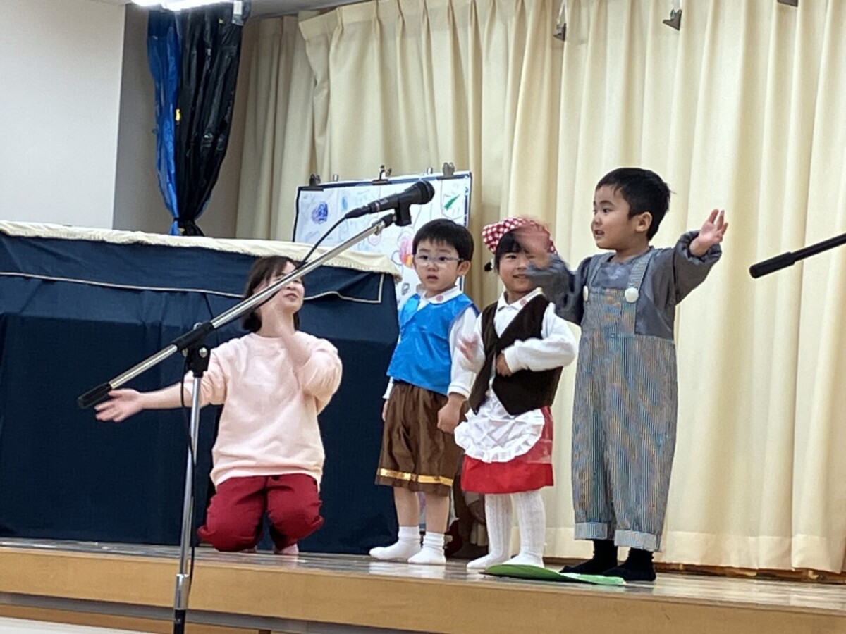 残念ながらインフルエンザでお休みのお友達が多い中での当日でしたが子ども達は代役を務めたり、お休みのお友達の分まで大きな声で歌ったり踊ったり・・・と子ども達のこれまでの成長を感じることができたのではないかな、と思います。ステージに立つ子ども達は、とても素敵で輝いていましたね!